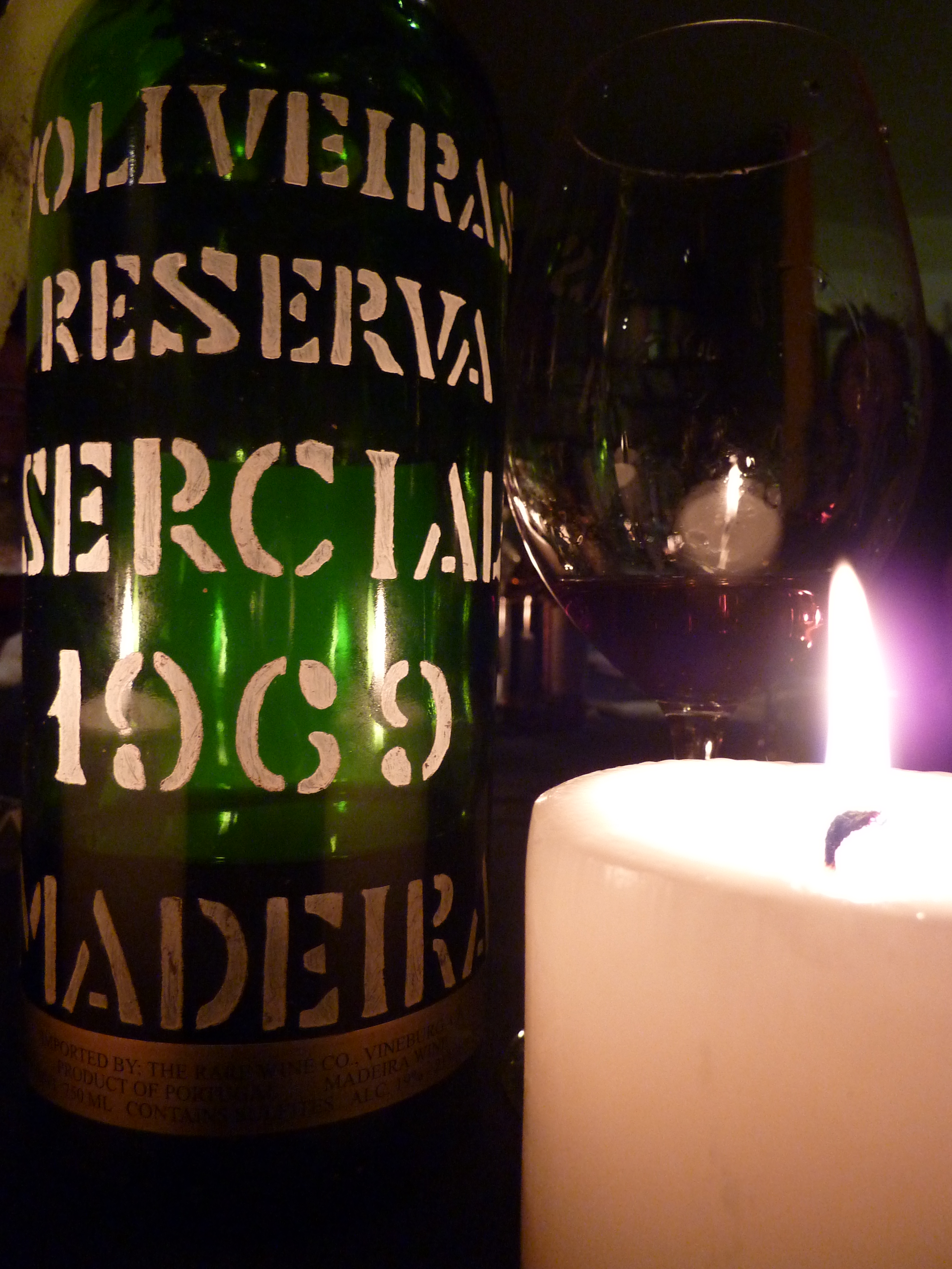 For the 6th or what would traditionally be the cheese course, we traveled to Europe and were served a twice-baked three cheese soufflé with cream alongside a house made quince ravioli in beurre noisette. It was paired with a 1969 d’Oliveiras Sercial Madeira. A guest at the party asked if we needed to be concerned about oxidation, given the age of the wine, so while our host (who knew the answer) puttered in the kitchen for the next course, I broke it down for everybody.