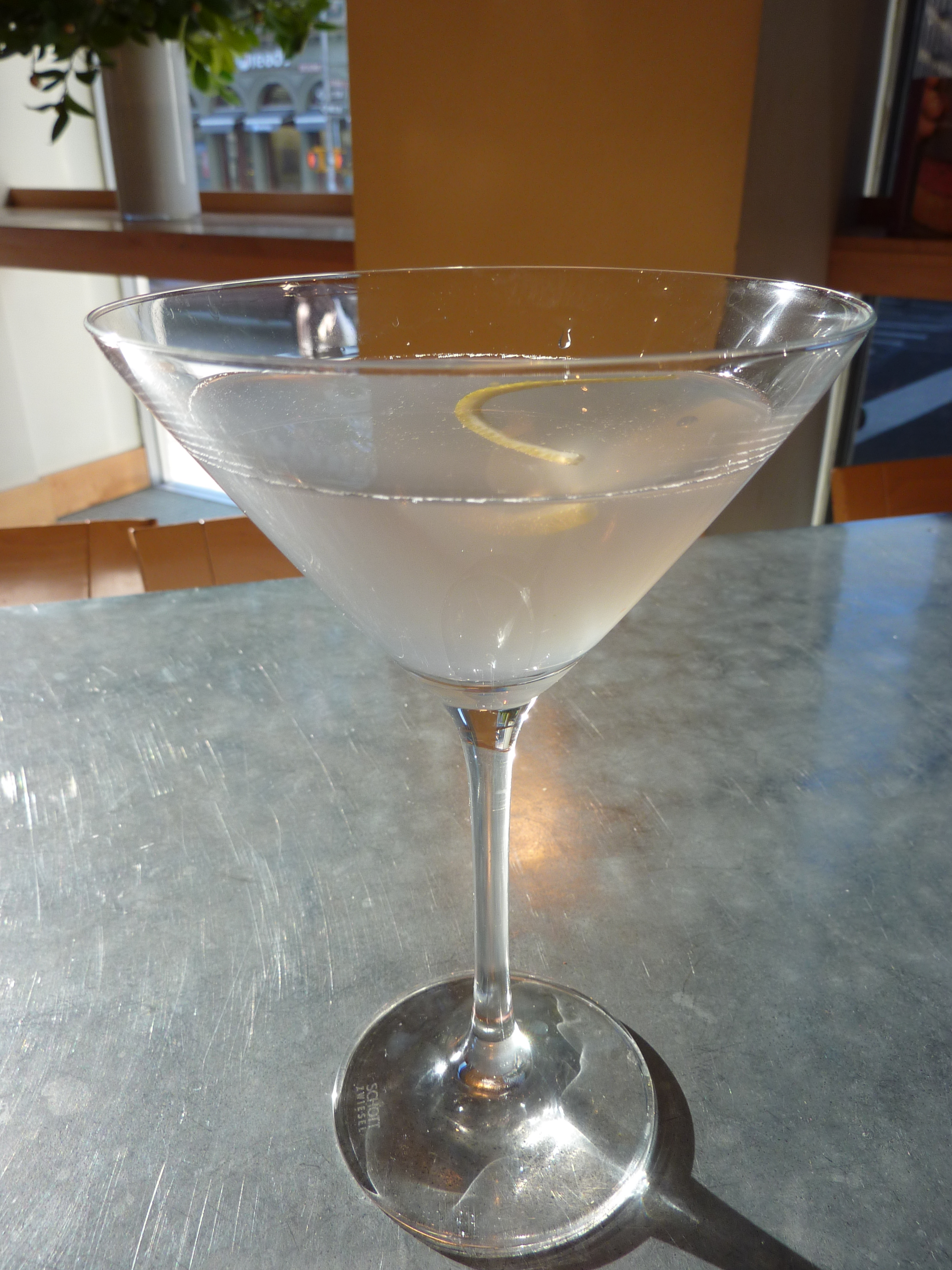 Many of you may have sampled an Aviation – gin, lemon, maraschino liqueur. The focus of this post, the Blue Moon, is similar, sub crème de violette for the maraschino liqueur. Haigh didn’t include this cocktail in his first edition of this book because crème de violette was not available to the American public at that time. Thanks, Haus Alpens!