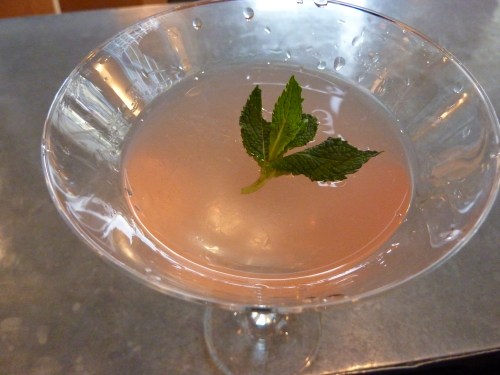 1 3/4 oz. gin (I used Seneca Drums), 1/2 oz. maraschino liqueur (I used Finger Lakes Distilling Cherry Liqueur), 1/4 oz. grapefruit juice (I used ruby red). Shake all ingredients over ice and strain into chilled glass. Garnish with mint.