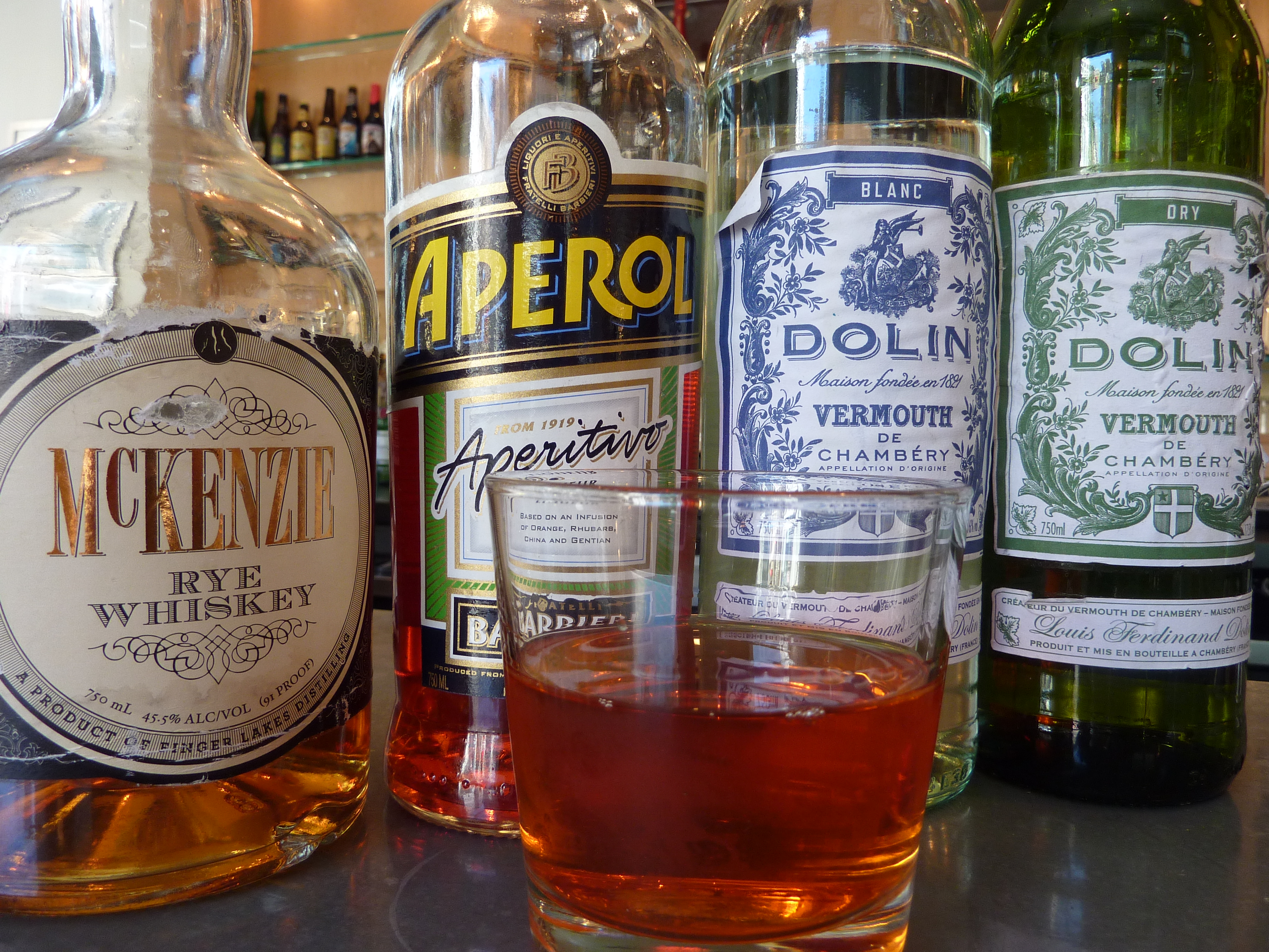Leo mentioned that he had used rye, Aperol and equal parts dry and sweet vermouths. Here is what I did today: