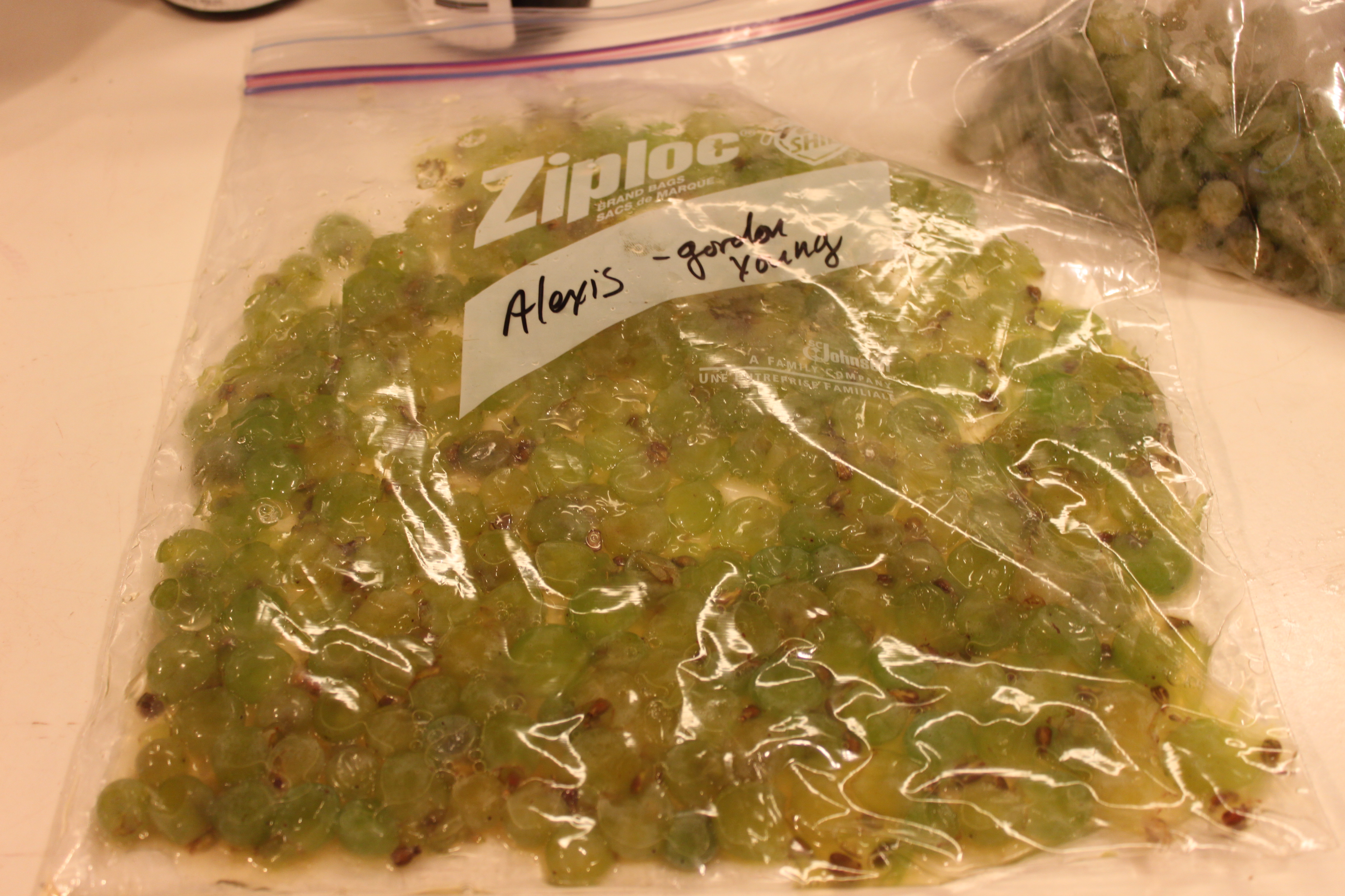 Back at the lab, we squished our grapes to relase the juice. Notice how the seeds are starting to ripen, going from green to brown.