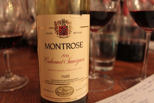 Montrose. Sounds French, right? Wrong, New South Wales in Australia. Wine #1 was a ringer courtesy of Chris. The nose was exciting; cinnamon ribbon candy, coffee, licorice, venison. The palate was diappointing, however; one-noted and hot on the finish. The least favorite of the group.