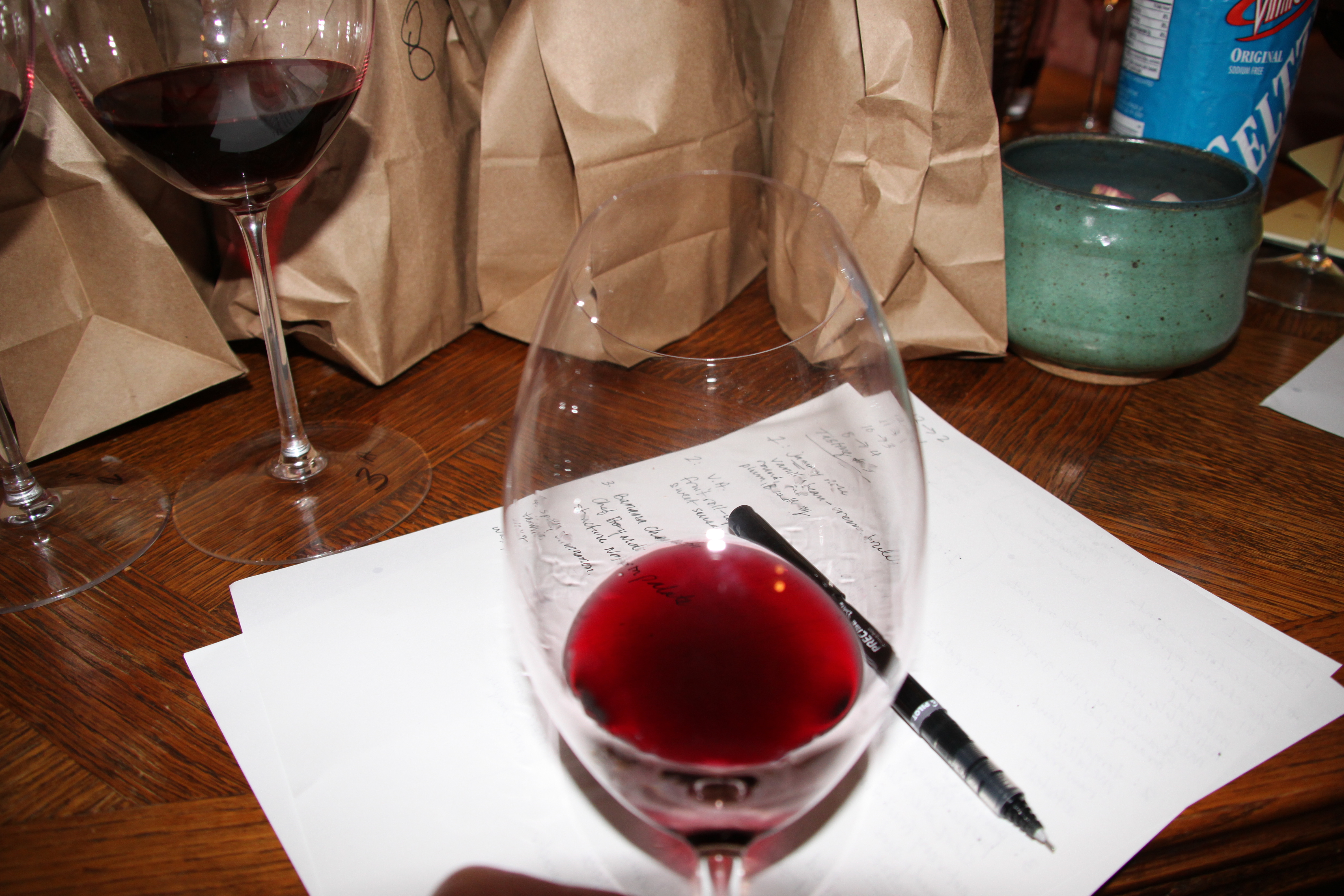 We broke our 12 wines into 3 flights of 4. One of our members was stuck in the country because of the snow, so we had 6 out of the 10 Crus represented.