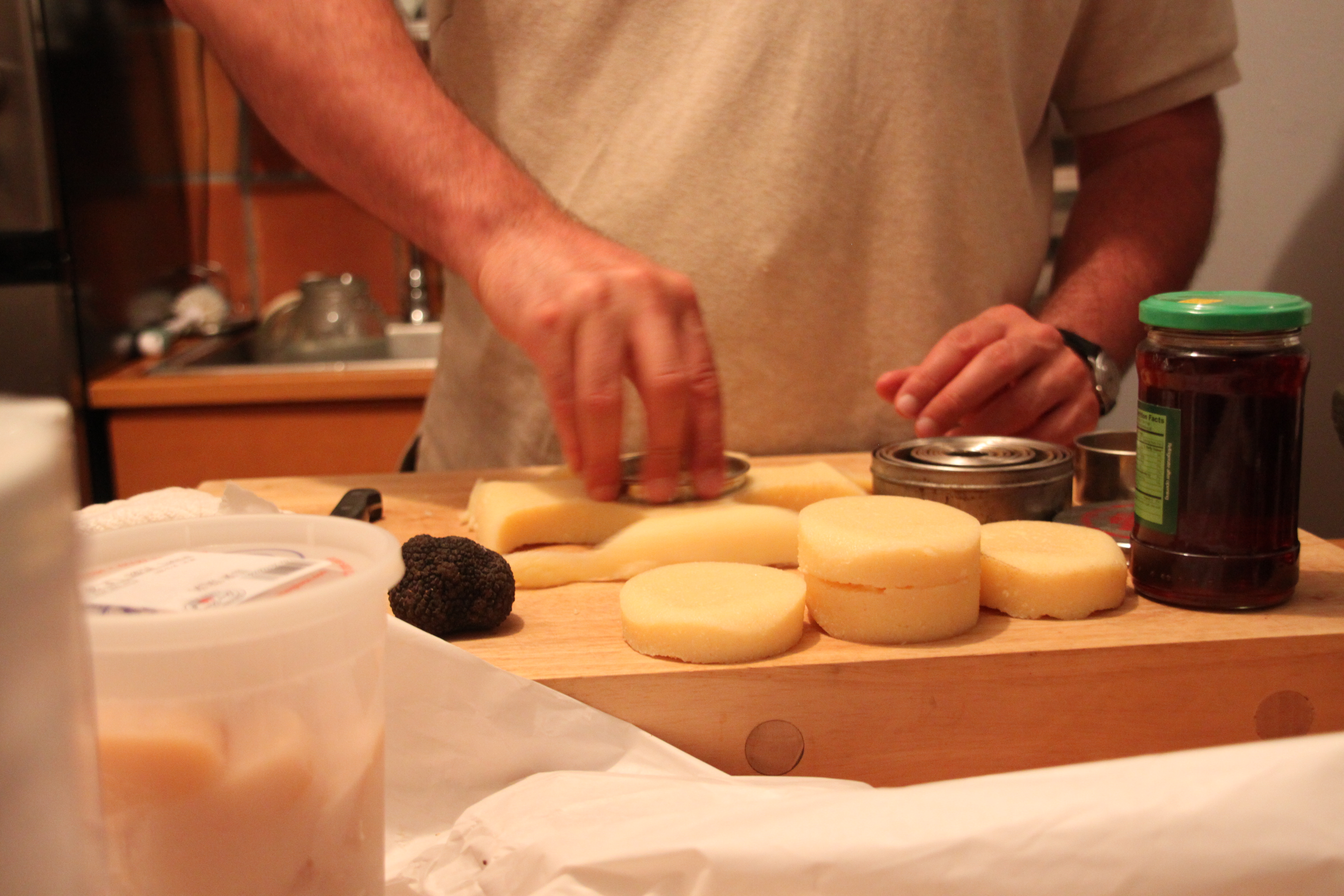 The plan was to grill polenta, along with other goodies. I suggested ring molds, to keep up appearances.