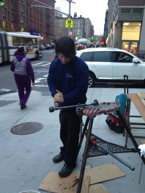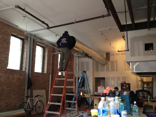 Here comes her big sister down the street. Our landlord was kind enough to let us house all of our equipment in his not-yet-rented commercial space next door during our build out.