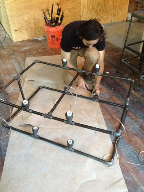 Mike working on more of our lighting. With all of our extra time, we're going to start a lamp manufacturing business on the side. All of our lights will be hung by tomorrow.