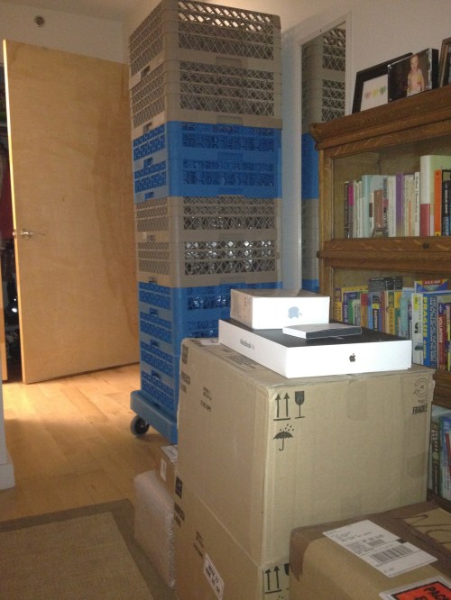 I could open a restaurant out of my apartment right now. Those glass racks are taller than me. Excited to start moving all of this stuff to the bar this weekend.