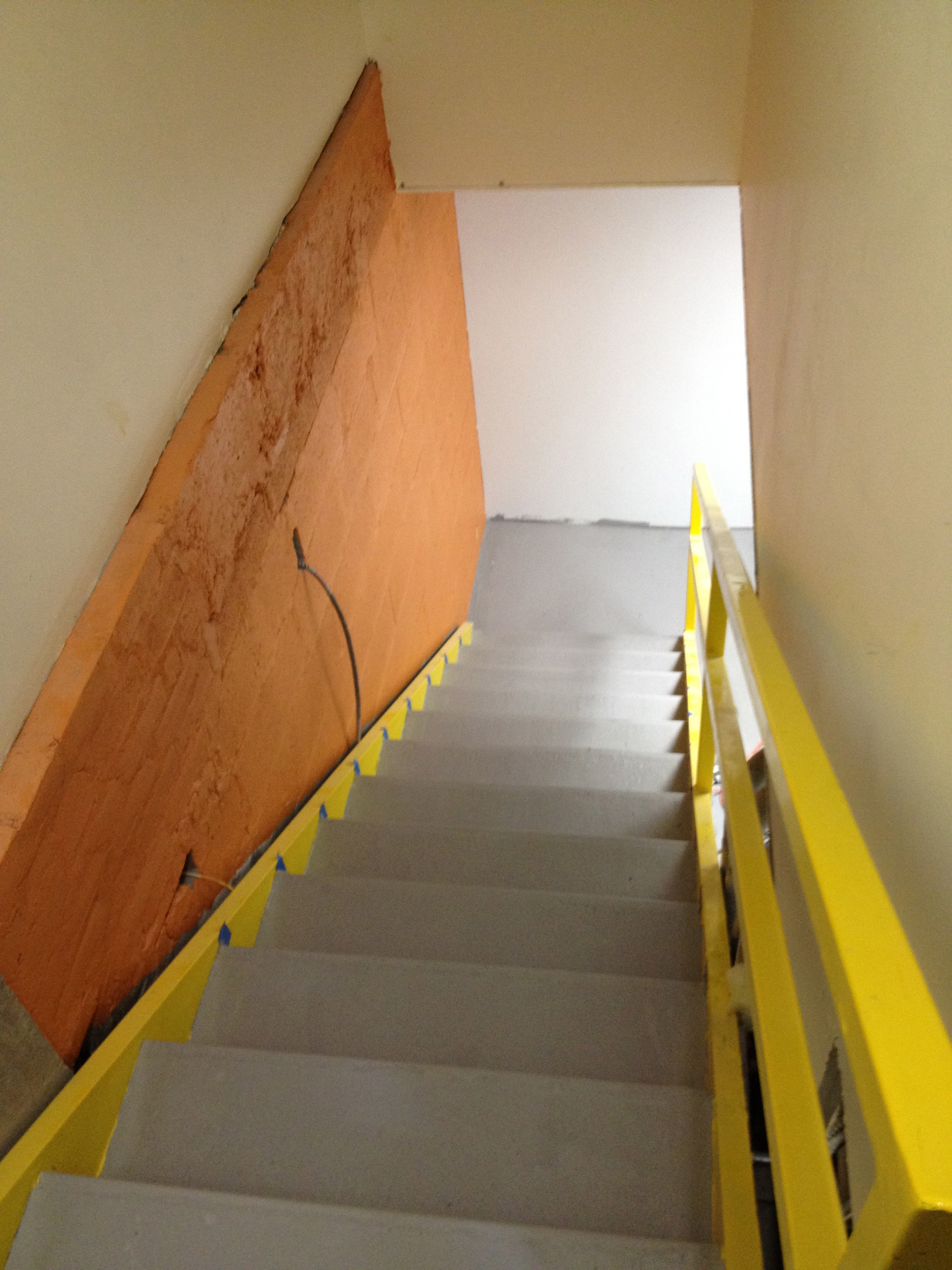 The basement floor and stairs are now painted. We're continuing our cheery theme down there.