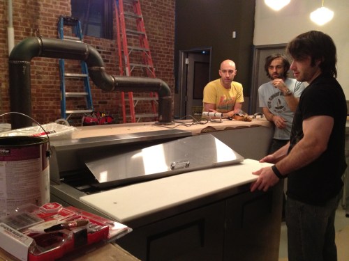 Kitchen refrigeration went in. All equipment is installed and working. Corey is in there cooking today. Wait til you see what we're doing with that 4 inch pipe on the counter.
