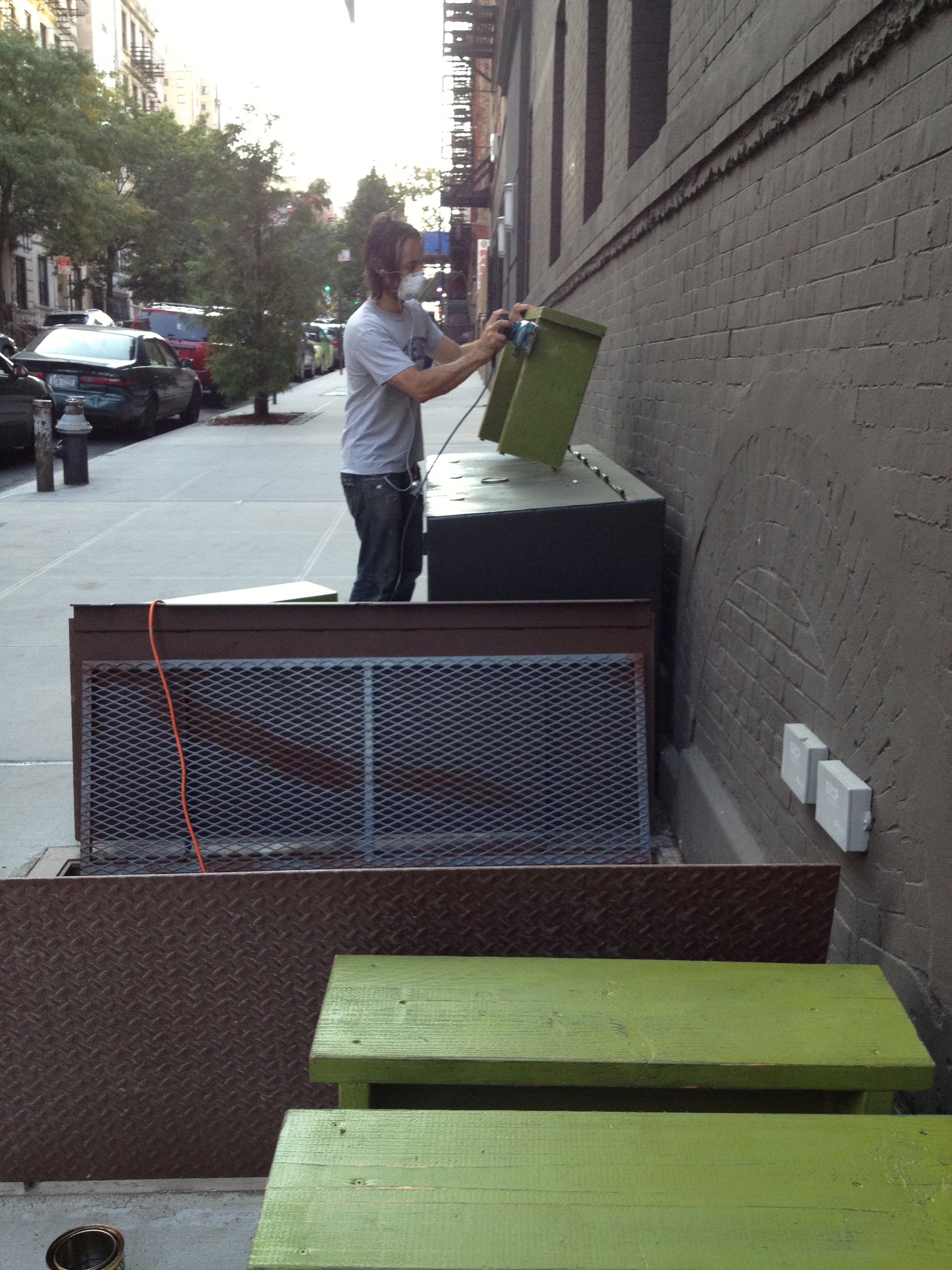 Painting and sanding benches outside on a warm fall day. A bit less stressful than this time last year. It’s good to need more seats!